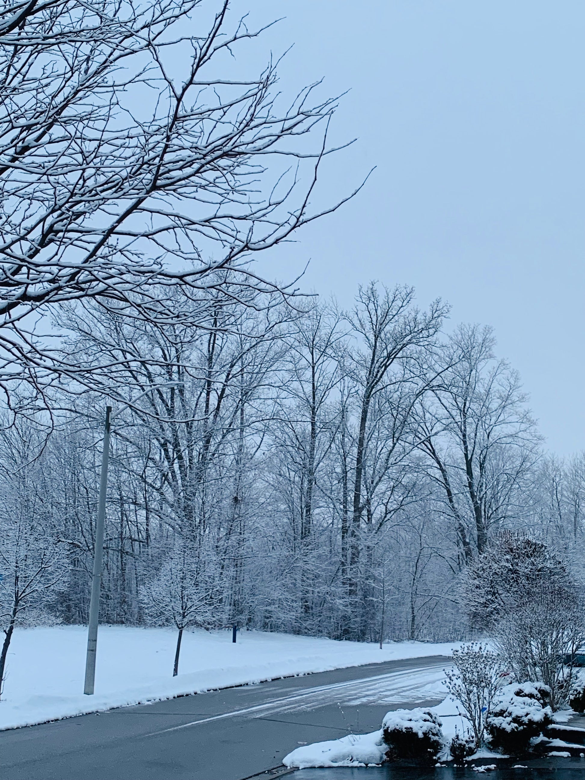 Bring the calm beauty of winter into your space with this high-resolution digital photograph, featuring snow-dusted trees, a quiet road, and a soft blue winter sky. Perfect for wall art, screensavers, seasonal cards, or digital projects.
